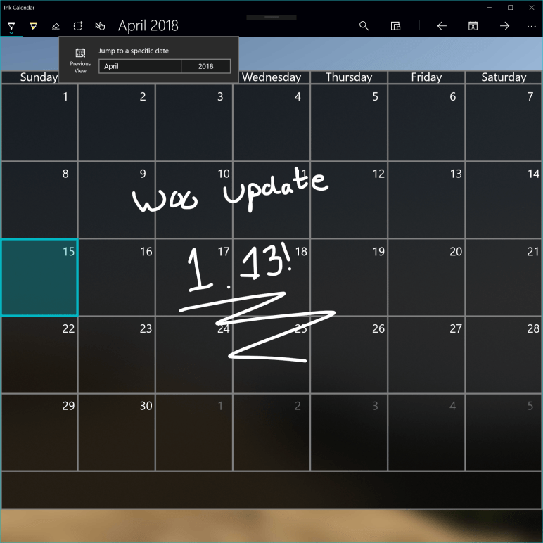 Currently Ink Calendar relates one view to one ink file. Each ink file is loaded into an InkCanvas control. If I were to show week view ink on top of month view ink then any new ink would be added to the week view ink file. Parsing user intent on where they expect the ink to save and load gets complicated and nearly impossible to disentangle.